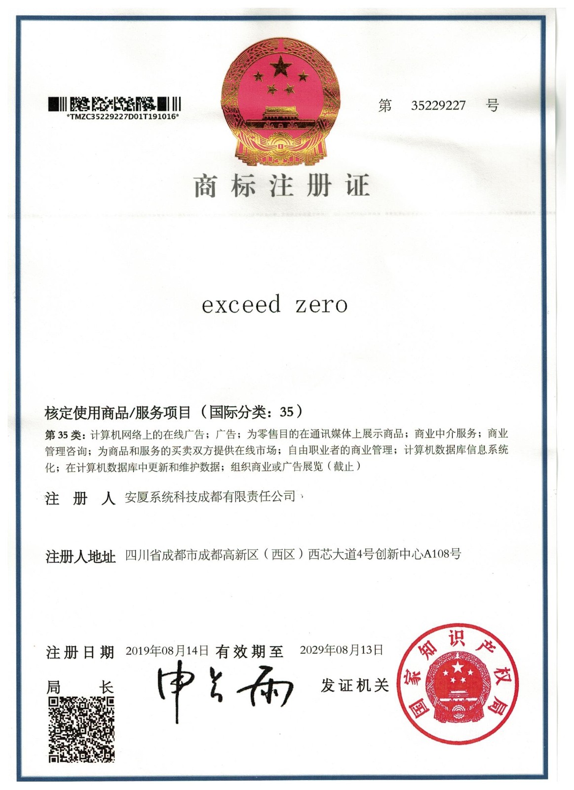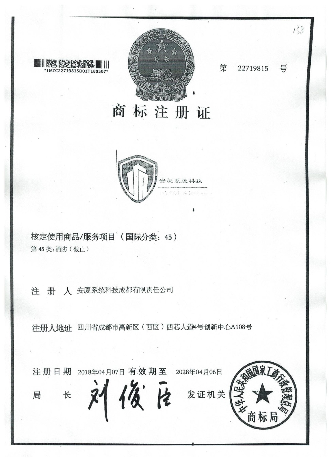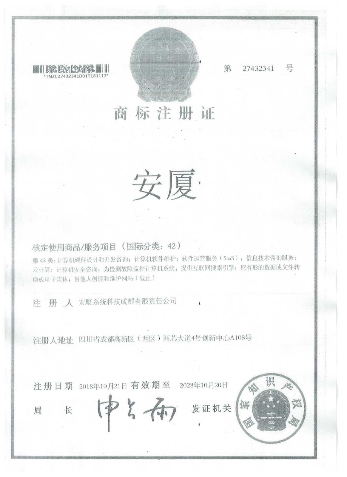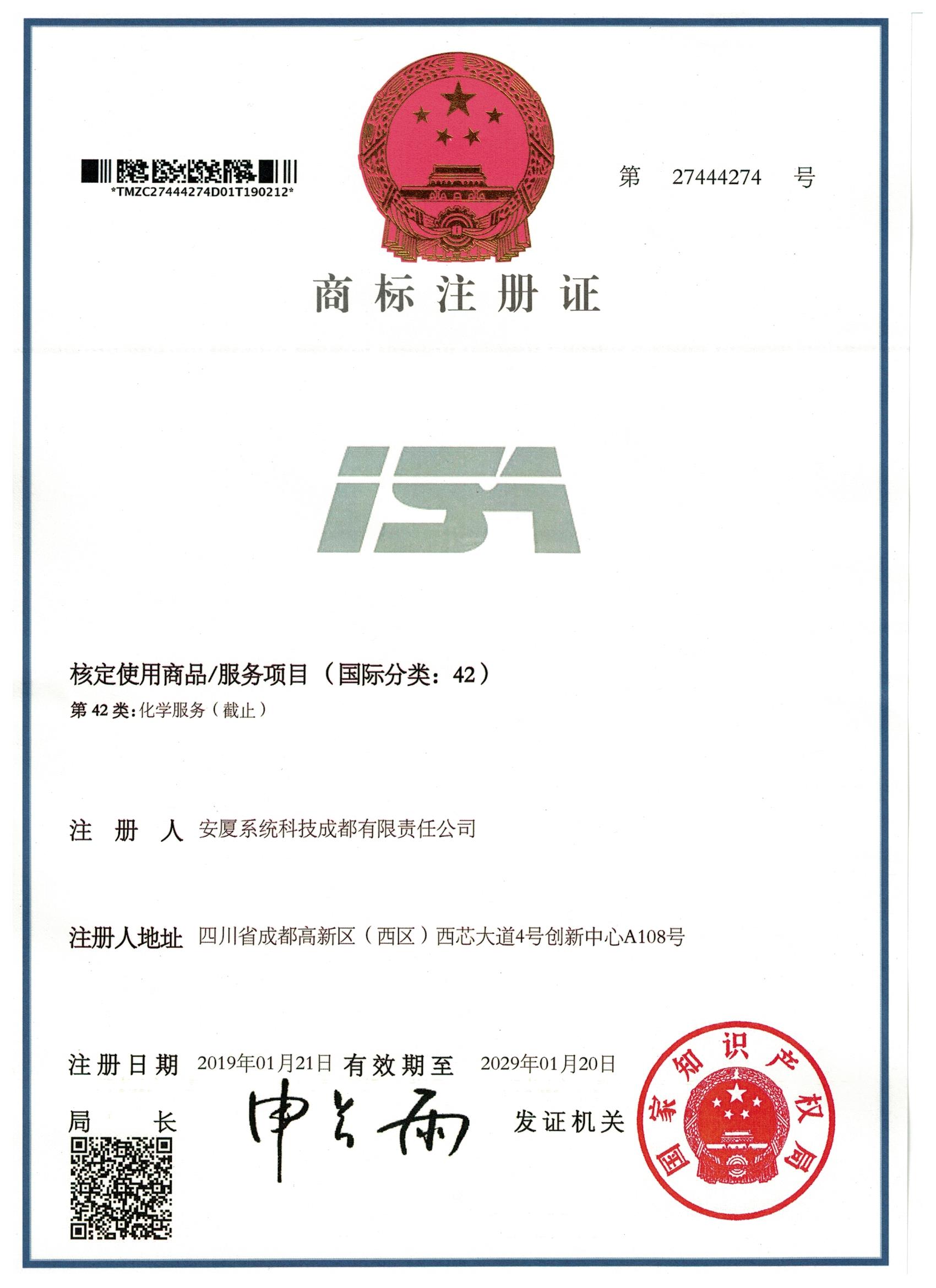 • 商標(biāo)注冊證