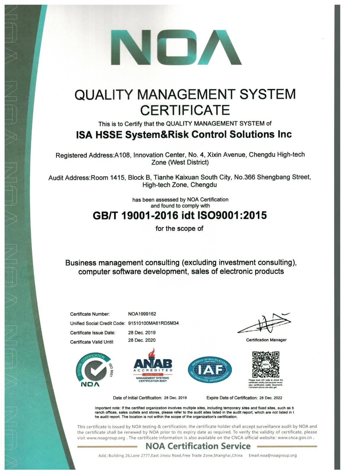 安廈系統(tǒng)科技成都有限責(zé)任公司成立于2015年,專注于提供風(fēng)險(xiǎn)管理整體咨詢及技術(shù)服務(wù),業(yè)務(wù)涵蓋安全健康環(huán)保管理體系咨詢服務(wù)、安全生產(chǎn)標(biāo)準(zhǔn)化建設(shè)咨詢服務(wù)、應(yīng)急預(yù)案咨詢服務(wù)、第三方安全監(jiān)管服務(wù)、安全培訓(xùn)服務(wù)、安全信息化開發(fā)服務(wù)。