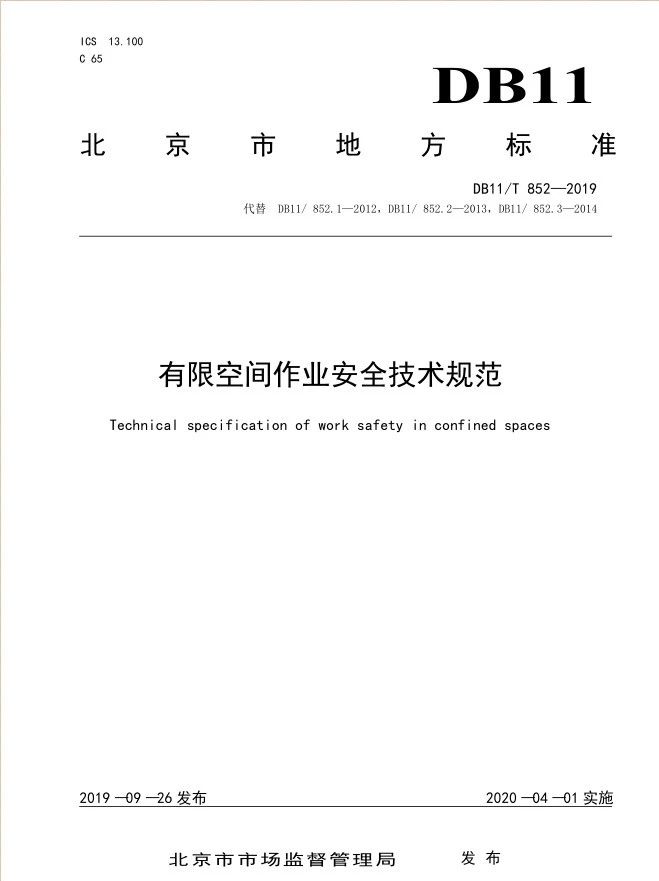 北京市 《有限空間作業(yè)安全技術規(guī)范》 DB11T852-2019