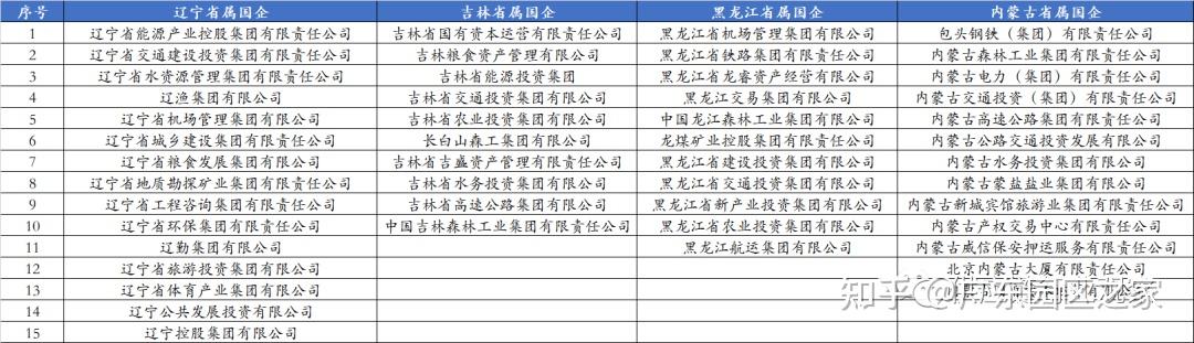 東北三省共有36家省屬國企,其中遼寧省15家、黑龍江11家、吉林省10家。相對其他省份,在行業(yè)分布上東三省因其豐富的林業(yè)資源,森工集團是省屬國企的一大特色。此外,內蒙古擁有13家省屬國企。
