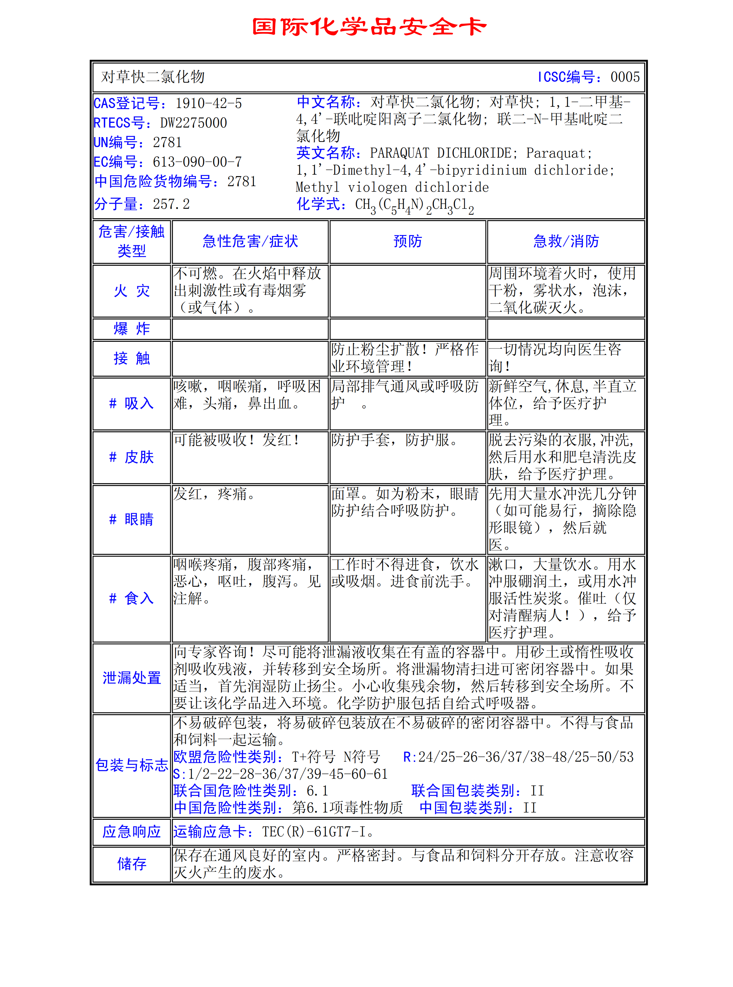 對草快二氯化物MSDS