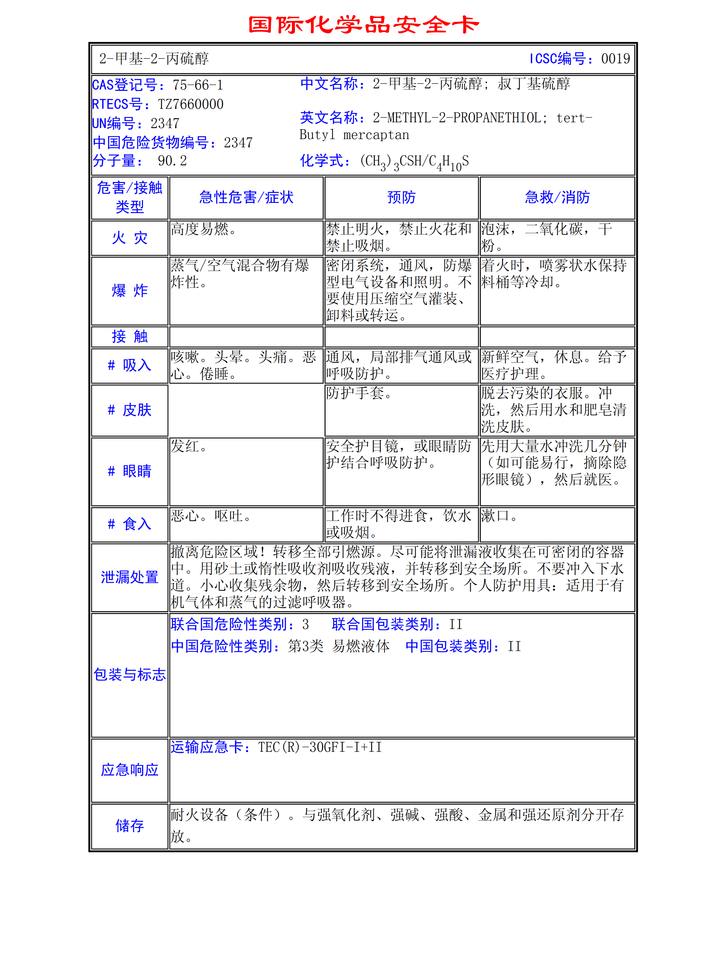 2-甲基-2-丙硫醇MSDS