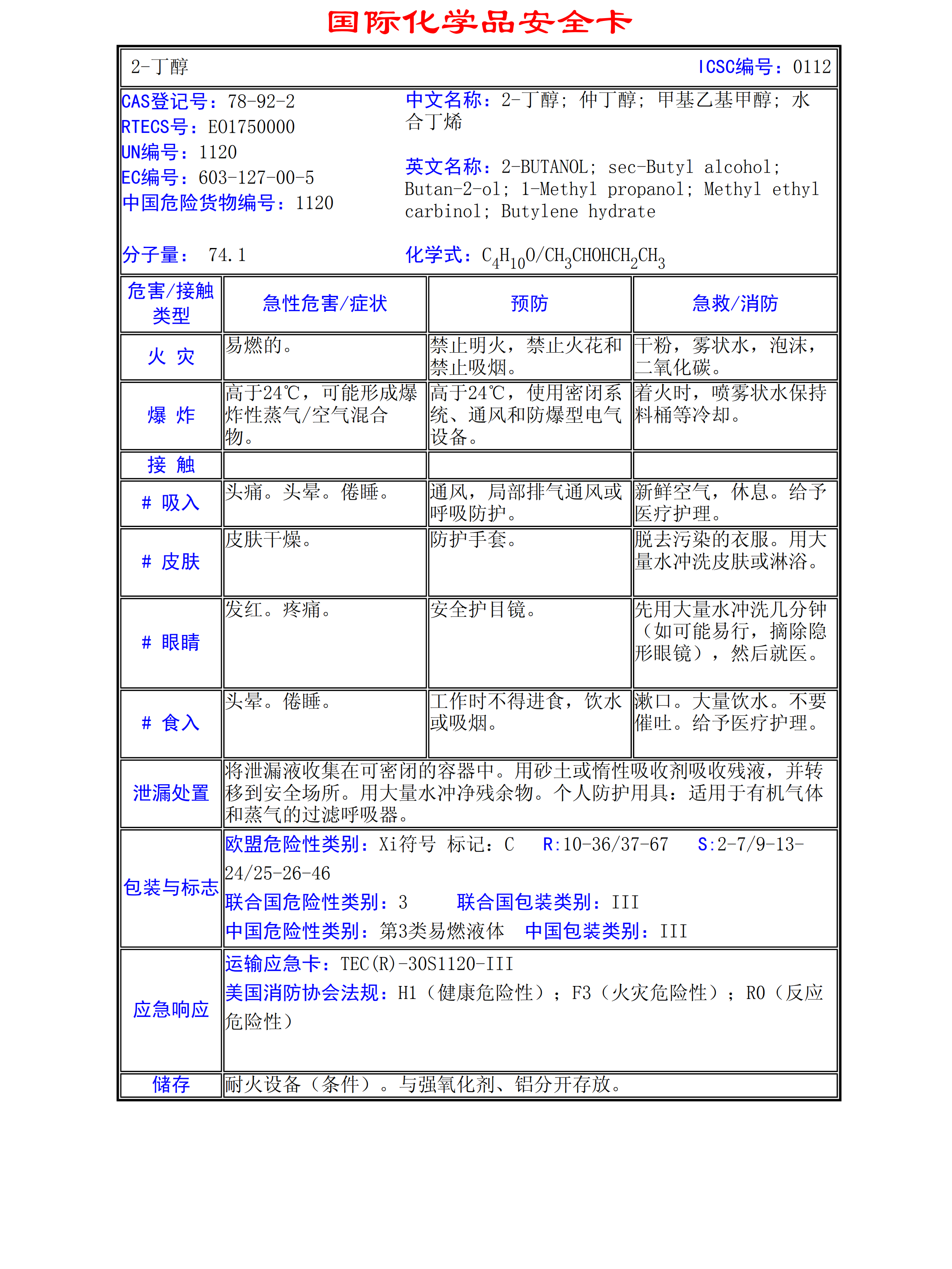 2-丁醇MSDS