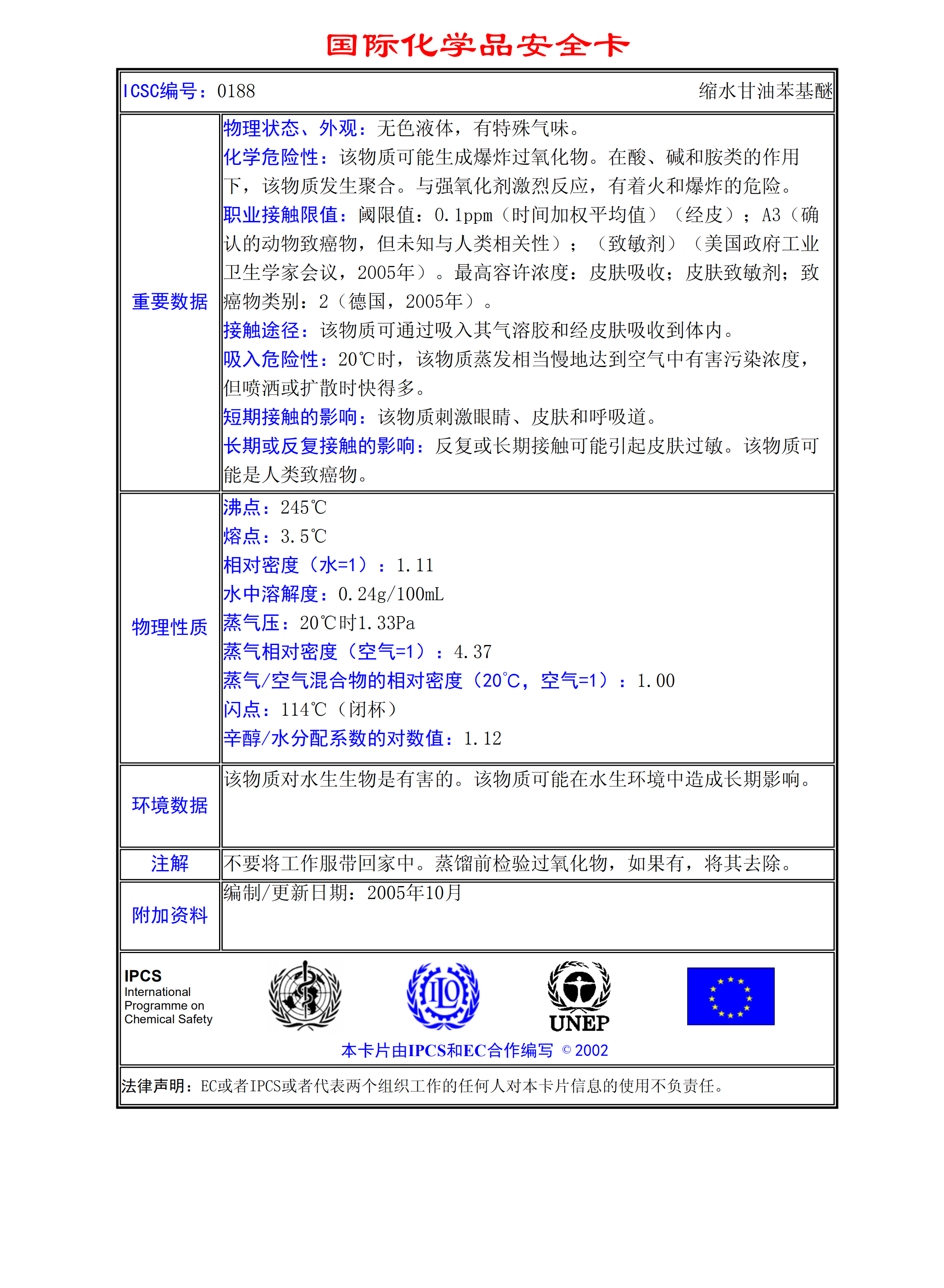 縮水甘油苯基醚MSDS