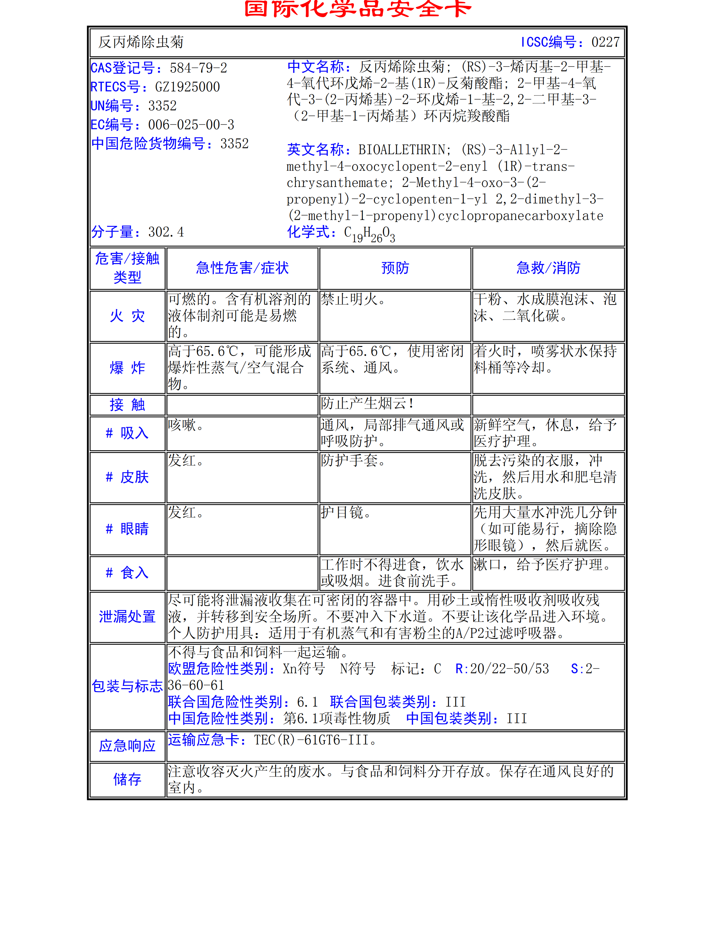 反丙烯除蟲(chóng)菊MSDS