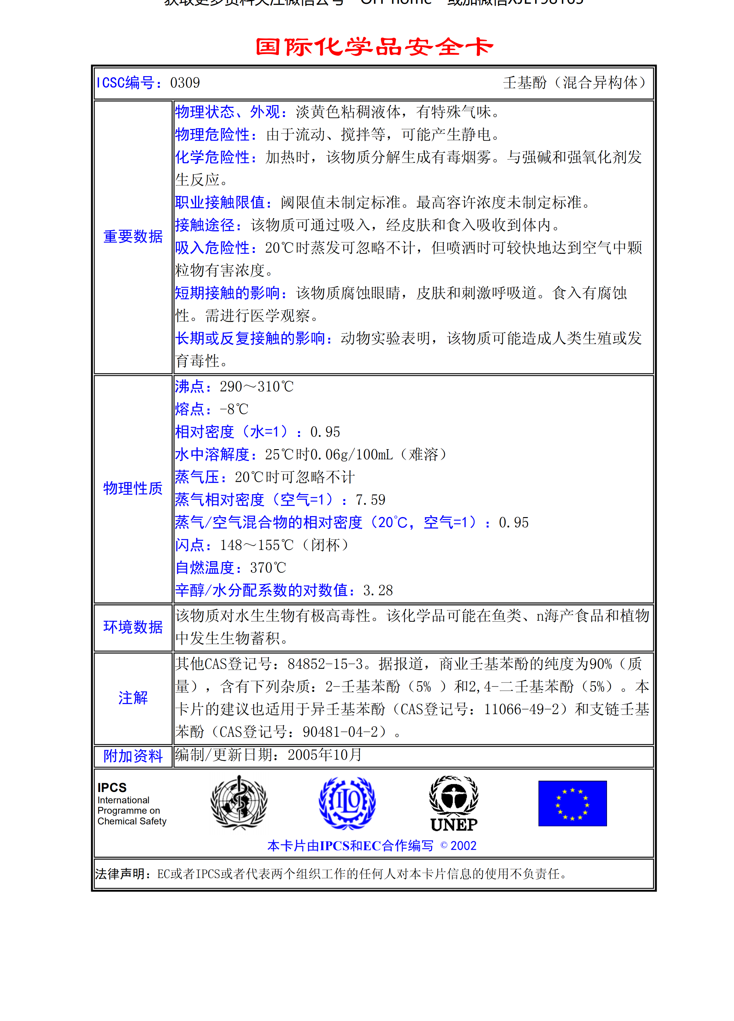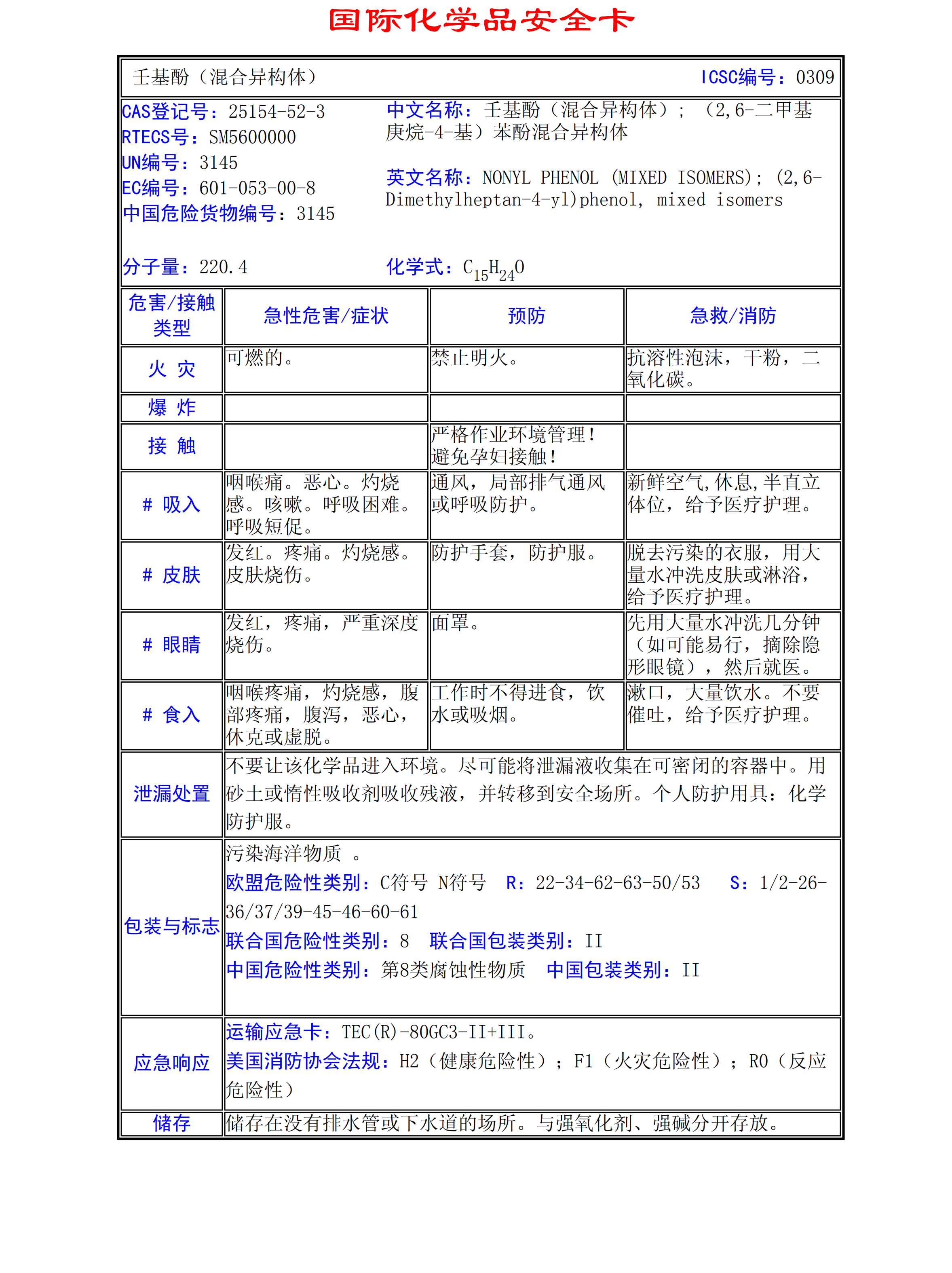 壬基酚(混合異構體)MSDS