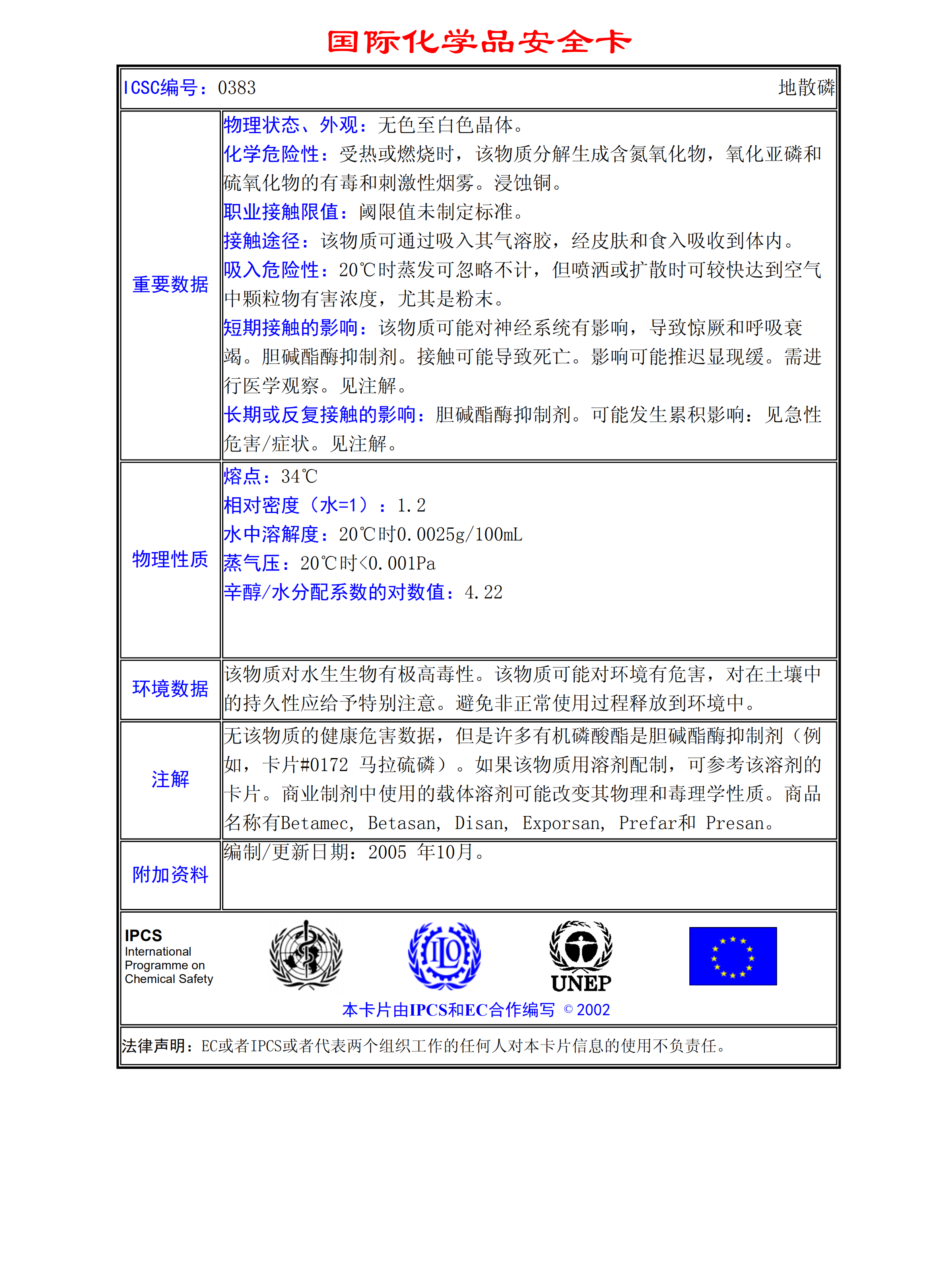 地散磷MSDS