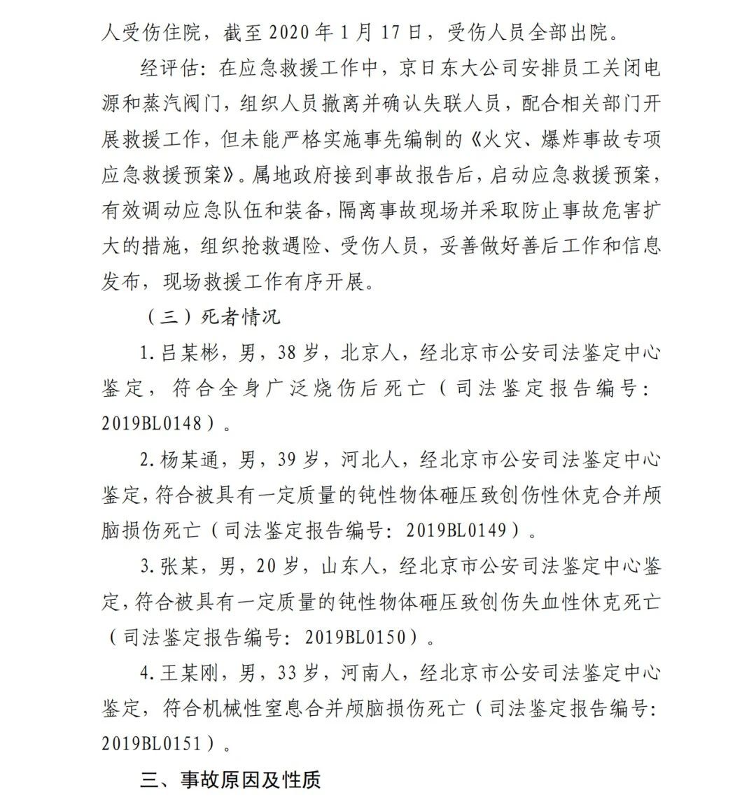 2019年12月3日2時43分許,北京順義區(qū)牛欄山鎮(zhèn)的(以下簡稱“京日東大公司”)一期生產(chǎn)車間內(nèi)發(fā)生燃氣爆炸事故,造成4人死亡,10人受傷,直接經(jīng)濟損失1429.563萬元。