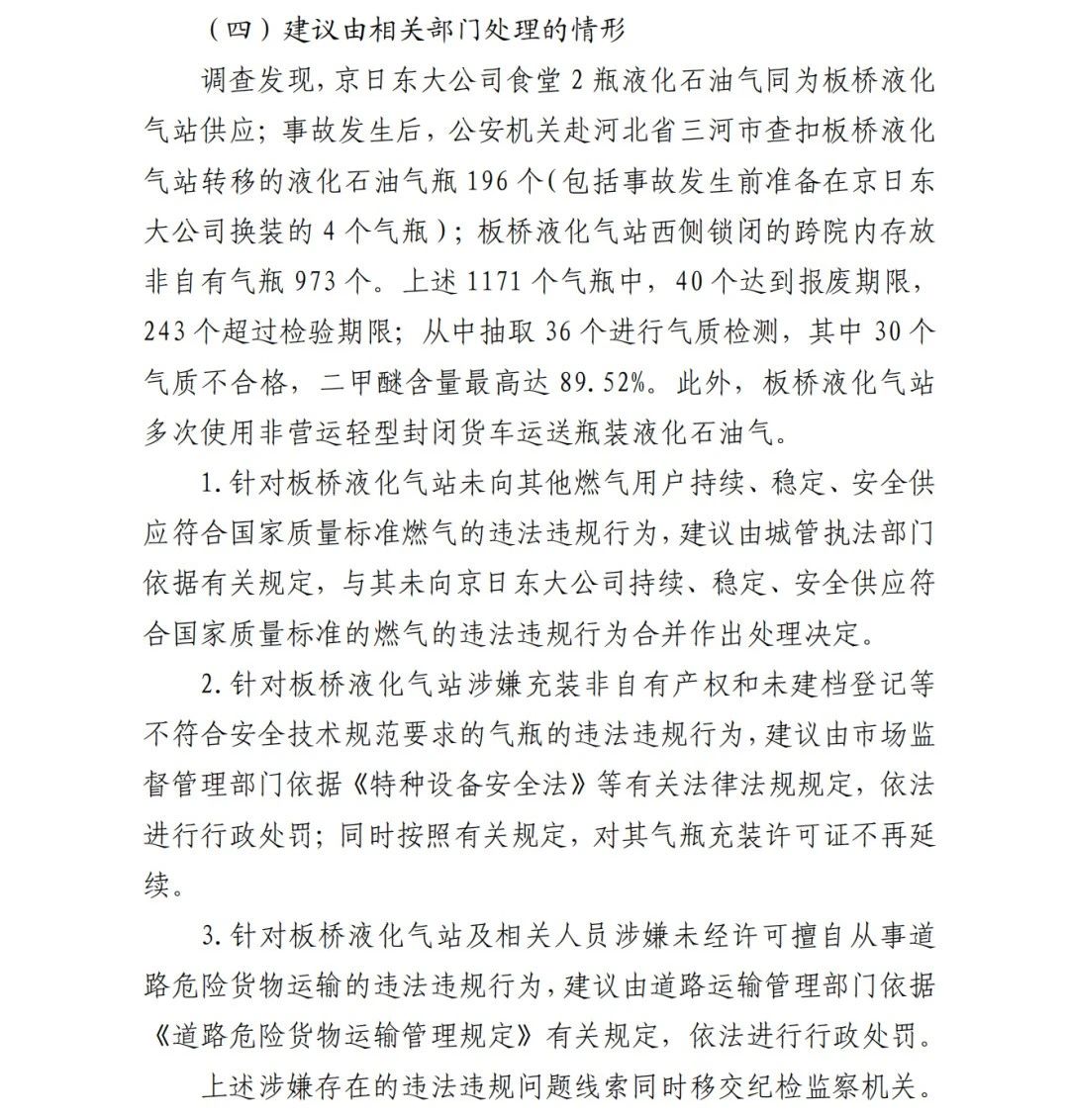 5.何志文,板橋液化氣站法定代表人,全面負責板橋液化氣站日常工作。未組織對京日東大公司一期生產(chǎn)車間燃氣管道主閥門等燃氣設施定期開展安全檢查;與京日東大公司簽訂供氣合同,長期向京日東大公司供應添加二甲醚的不合格液化石油氣,導致燃氣管道主閥門法蘭墊片加速腐蝕、物理機械性能顯著下降,造 成燃氣泄漏引發(fā)事故,對事故發(fā)生負有直接責任,涉嫌重大責任事故罪。2019 年 2 月至 2019 年 12 月,非法購買二甲醚 401.38 噸,充裝至液化石油氣瓶內(nèi)進行銷售,涉嫌生產(chǎn)、銷售偽劣產(chǎn)品 罪。2020 年 1 月 10 日,由順義區(qū)人民檢察院批準逮捕。