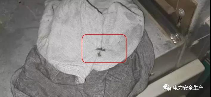 1時42分,孟某某到達發(fā)電機出線小間,摘下發(fā)電機出口開關(guān)101柜門鎖。1時42分13秒,曹某某到達發(fā)電機出線小間。曹某某檢查發(fā)現(xiàn)發(fā)電機測量保護PT12、發(fā)電機勵磁調(diào)節(jié)PT11實際位置與操作票中標注的狀態(tài)不符,便用手搖柄將PT11小車從試驗位置搖至工作位置。1時42分38秒孟某某打開發(fā)電機出口開關(guān)101柜門。1時42分51秒,孟某某用手搖柄將PT12小車從試驗位置搖至工作位置。1時43分52秒,曹某某右手持抹布左手拿操作票到發(fā)電機出口開關(guān)101前,開始清掃手車倉內(nèi)灰塵,并要求孟某某和自己一同清灰。期間,曹某某打開開關(guān)101手車倉內(nèi)10KV靜觸頭隔離擋板向內(nèi)擦拭。1時46分,開關(guān)101手車倉內(nèi)出現(xiàn)閃光,曹某某觸電后倒地,后經(jīng)搶救無效死亡。
