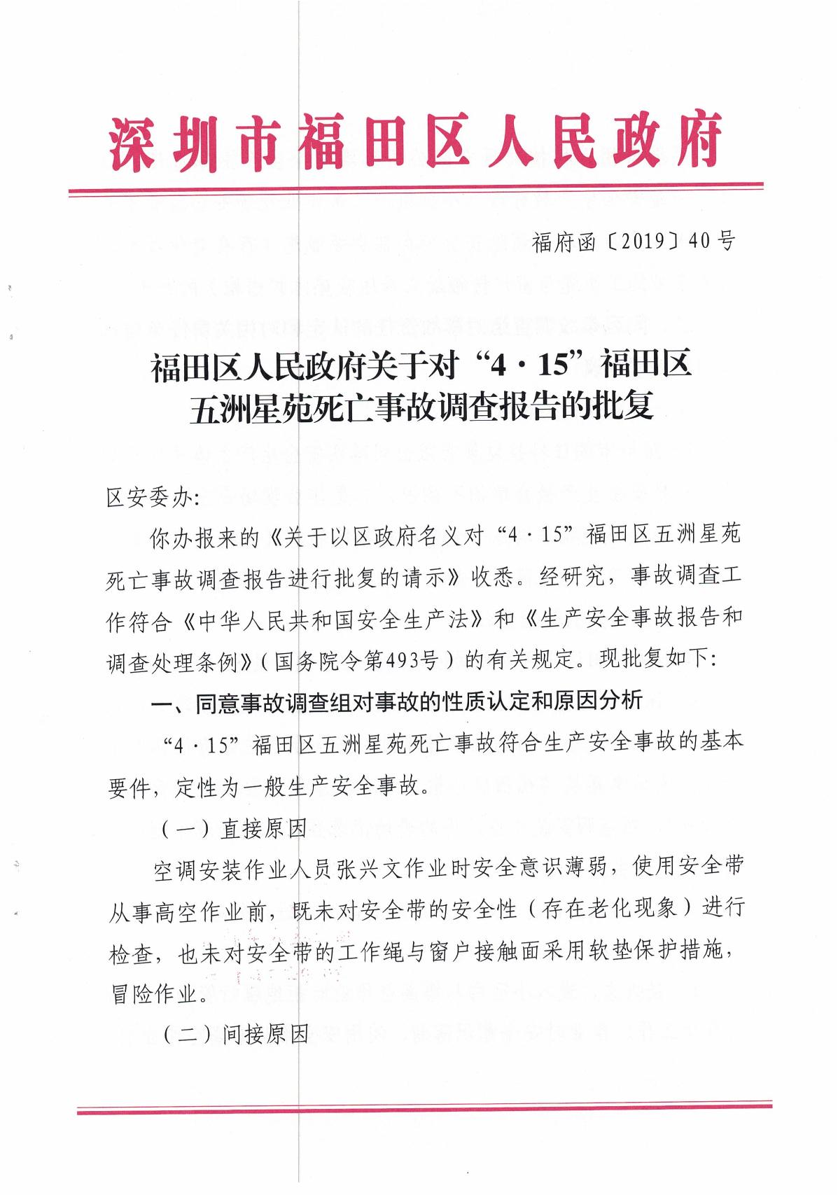 “4.15”福田區(qū)五洲星苑死亡事故調(diào)查報告