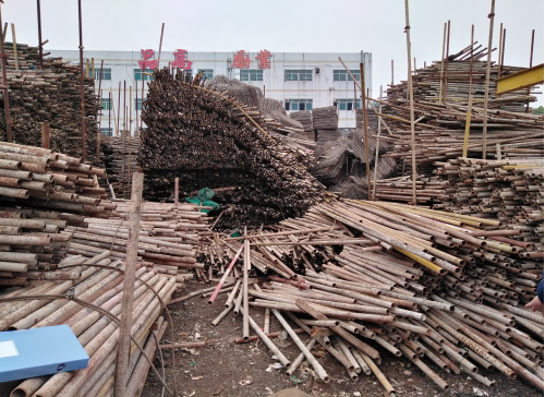 2017年2月19日,林秀銀請來溫依育及溫自群兩名臨時(shí)工到其堆放鋼管的場地整理鋼管。工作內(nèi)容是將散裝鋼管整理并打包。林秀銀租賃的場地兩側(cè)均為鋼管堆垛,后方為待整理的散裝鋼管,現(xiàn)場較為凌亂,通道不暢。其中左側(cè)鋼管堆垛(事故中發(fā)生倒塌的鋼管堆垛)最上方還堆放了高約1.2米的鋼笆片,鋼笆片堆放混亂,也不均衡,容易發(fā)生傾倒危險(xiǎn)。見下圖二。
